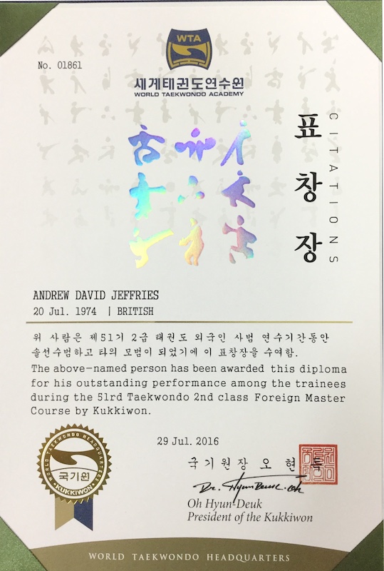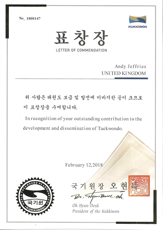 Kukkiwon Commendation