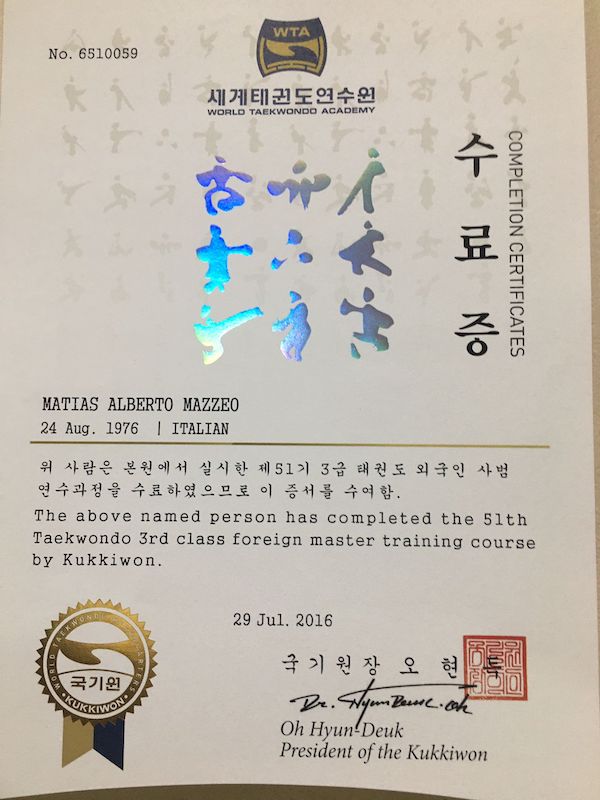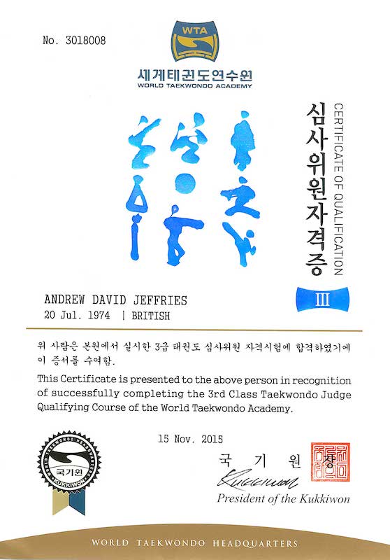 Kukkiwon 3rd Class International Master