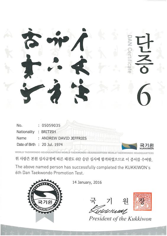 Kukkiwon 6th Dan