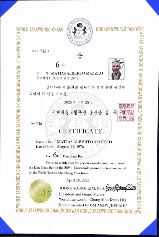 Changmookwan 6th Dan