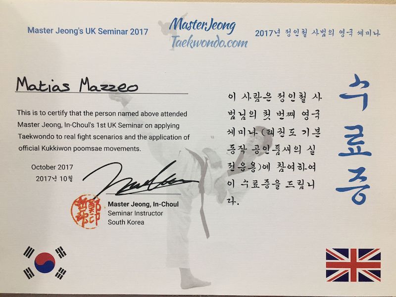 Awarded by Master Jeong, In-choul 2017