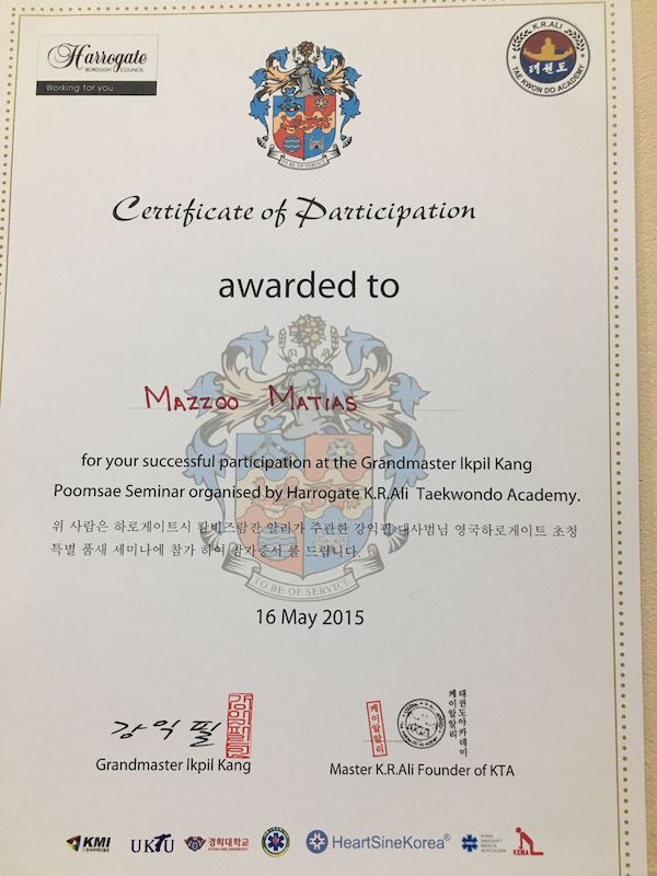Awarded by Grandmaster Kang, Ik-pil 2015