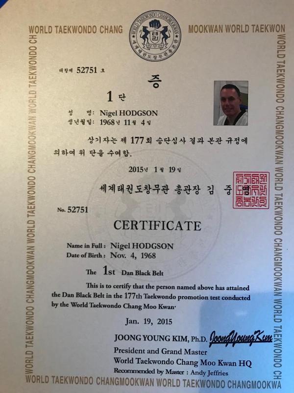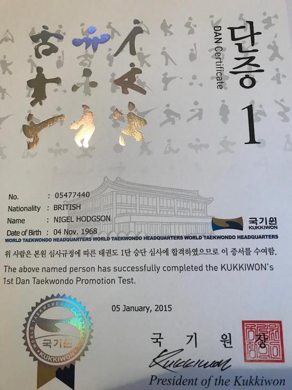 Nigel Hodgson 1st Dan