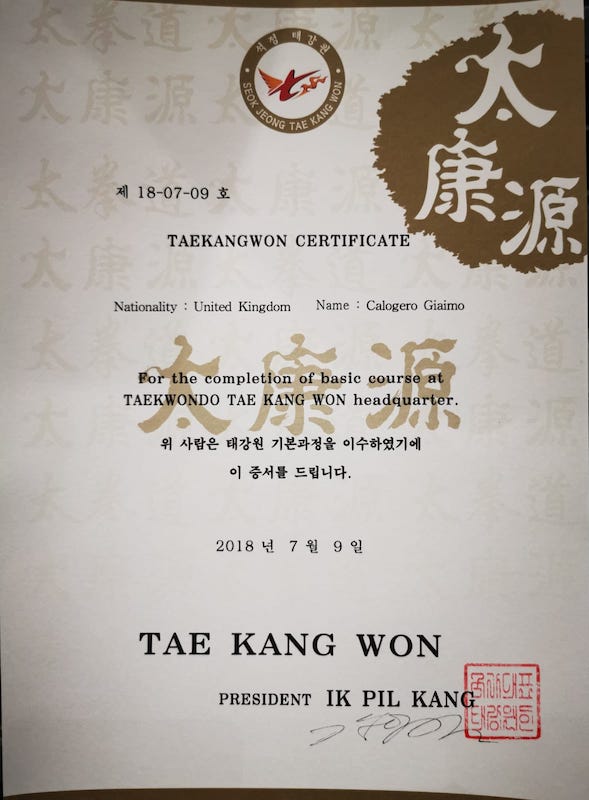 Awarded by Grandmaster Kang, Ik-pil 2018