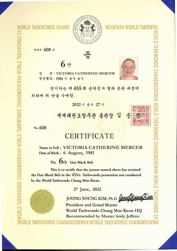 Master Vicky Mercer 6th Dan