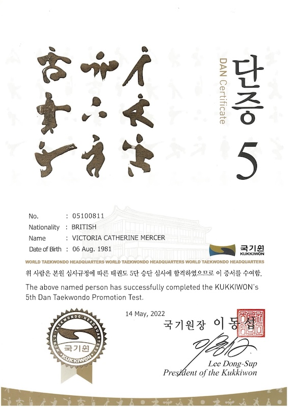 Kukkiwon 5th Dan